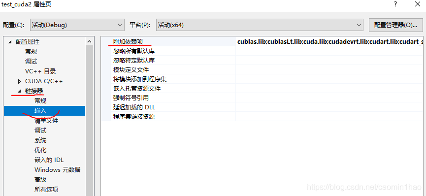 3.5.2 →链接器→输入→附加依赖项。再附加依赖项中添加相应的.lib文件名称