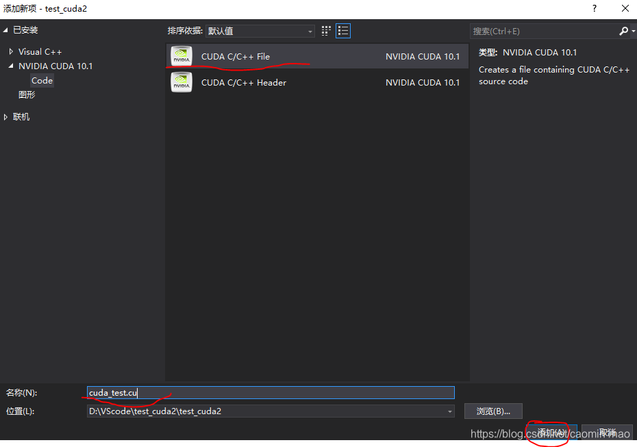 3.2 右击源文件→添加→新建项→CUDA C/C++ File;创建一个.cu文件