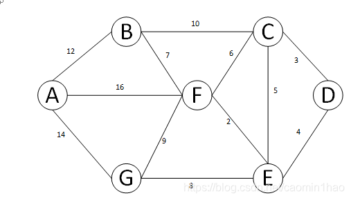这里使用Dijkstra(戴克斯特拉)算法,该算法起始点实际计算出到任一点的距离,计算两城市间的距离实际是一个副产物,所有一下图为例来说明,该图为无向图,顶点间所标数字即为两点之间的距离。