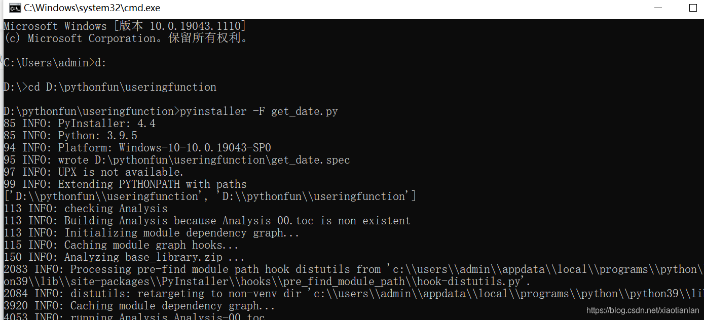 2,打包文件,pyinstaller -F xxx.py(xxx.py,打包的文件)