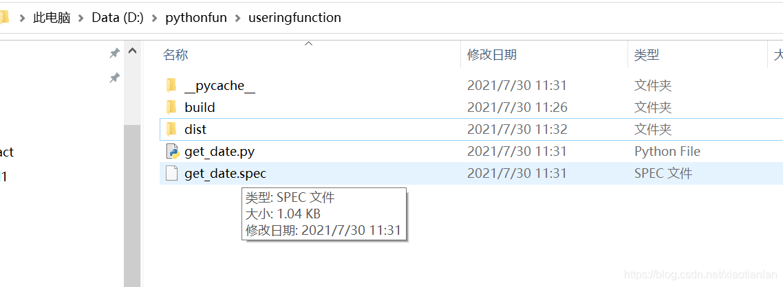 例:需要打包程序目录为:D:\pythonfun\useringfunction