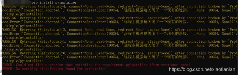 出现改pyinstaller安装错误常见问题是:pip版本或者setuptools包版本过低。