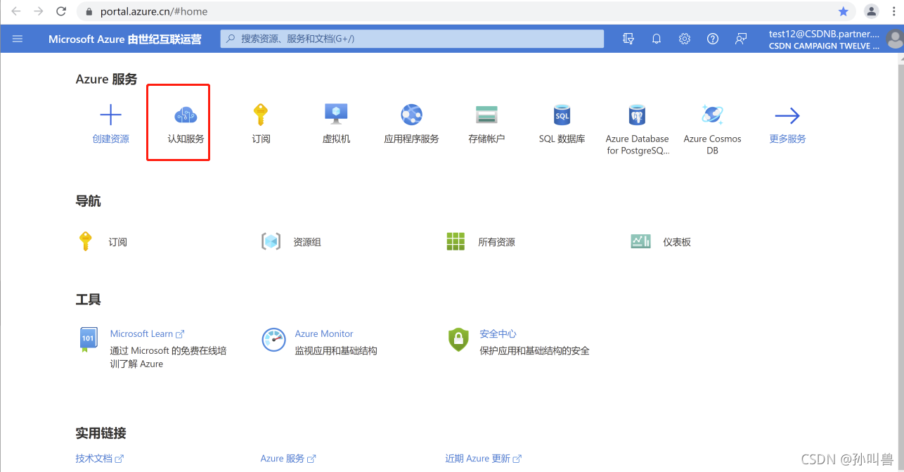 然后进入登录的主页,找到下面这个认知服务进行创建,这个第一次进来可能不好找,我刚开始也是找了半天,好多技术文档都是英文教程,看起来有点费劲,不过还有很多中文文档引导,还是很容易入门,找不到的可以直接搜索认知服务。