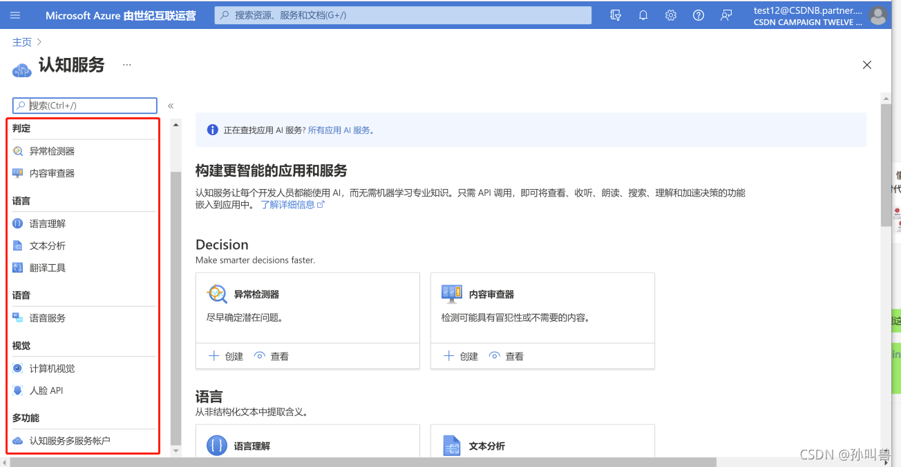 按照官方的要求,我们这次只体验认知服务的部分功能即可。