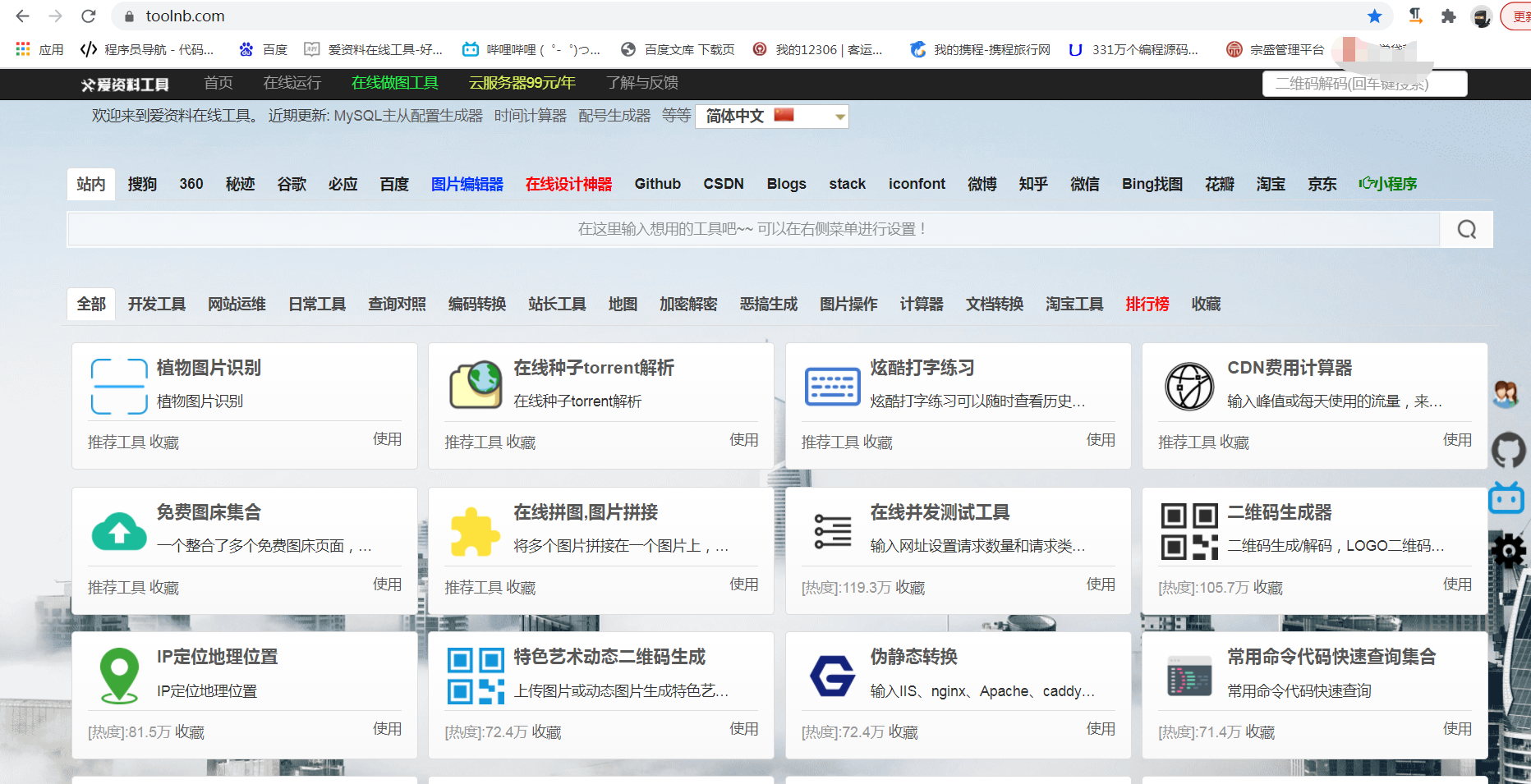 下面简单看一下他们官方推荐的一些常用插件及网址,如果在开发中经常用到,可以重点关注体验一下,我一般也就用用在线json工具,二维码生成,及github等。这个主页放置了天气,csdn,B站,ip地址查询,JSON工具,力扣等一下网址导航,挺常用的。