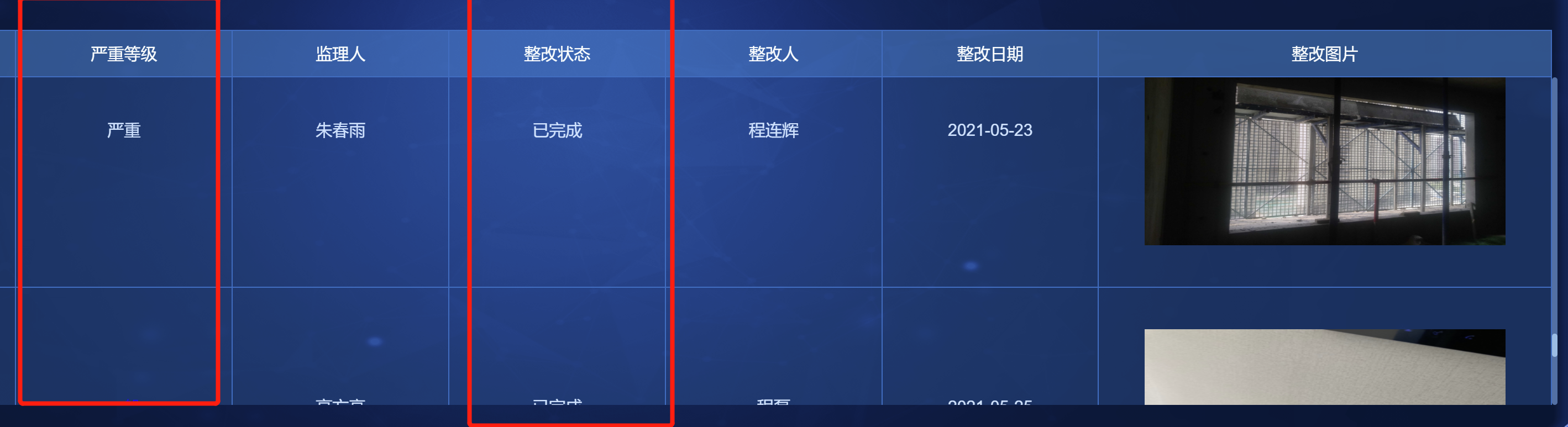 业务需求:根据后台返回的数据,对表格中的严重等级和问题状态做一下颜色区分。数据很大,大概一年左右的数据,在二级弹窗中,数据滚动的形式。