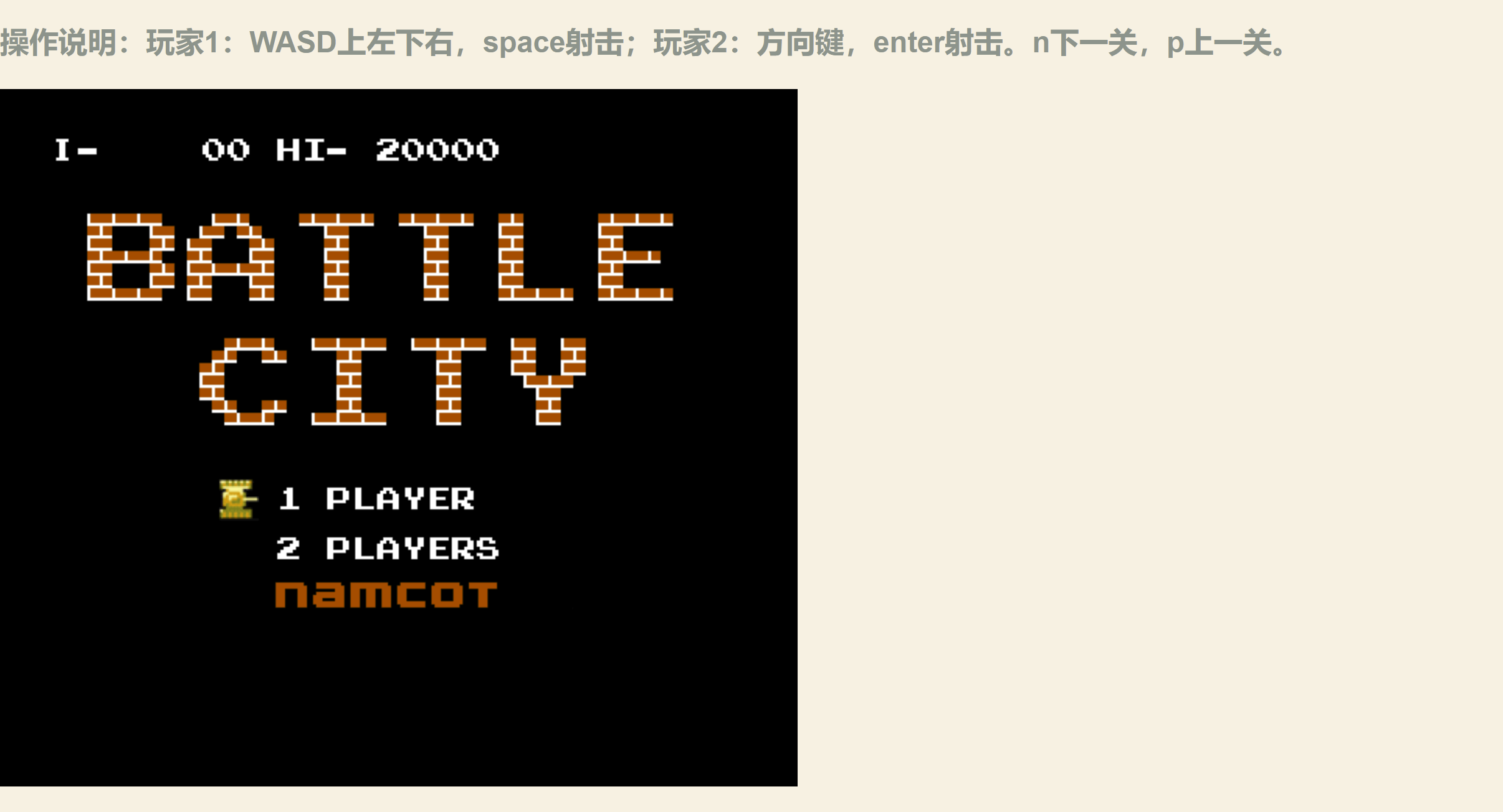 打开这个首页很简单,基本是上面这个样子,然后选择两个人回车就可以进行玩耍了,这个游戏需要两个人一起操作,玩家1(我): 使用WASD四个键进行上左下右方向的控制,通过space键进行设计射击。玩家2(女朋友):通过方向键上下左右控制方向,通过enter键盘射击。基本上我控制整个电脑键盘的左边,她控制电脑键盘的右边。通过N键进行下一关,P键选择上一关。再键盘上显示如下。