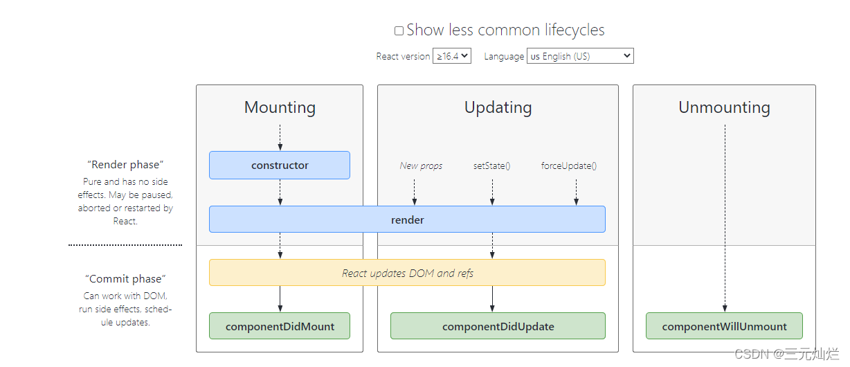 (2)当组件的 props 或 state 发生变化时会触发更新。