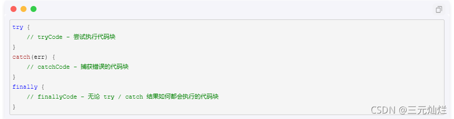 5、catch 和 finally语句都是可选的,但在使用 try语句时必须至少使用一个