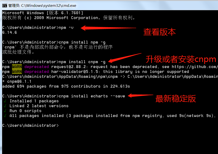 安装完成后 ECharts 和 zrender 会放在 node_modules 目录下,我们可以直接在项目代码中使用 require('echarts') 来使用。