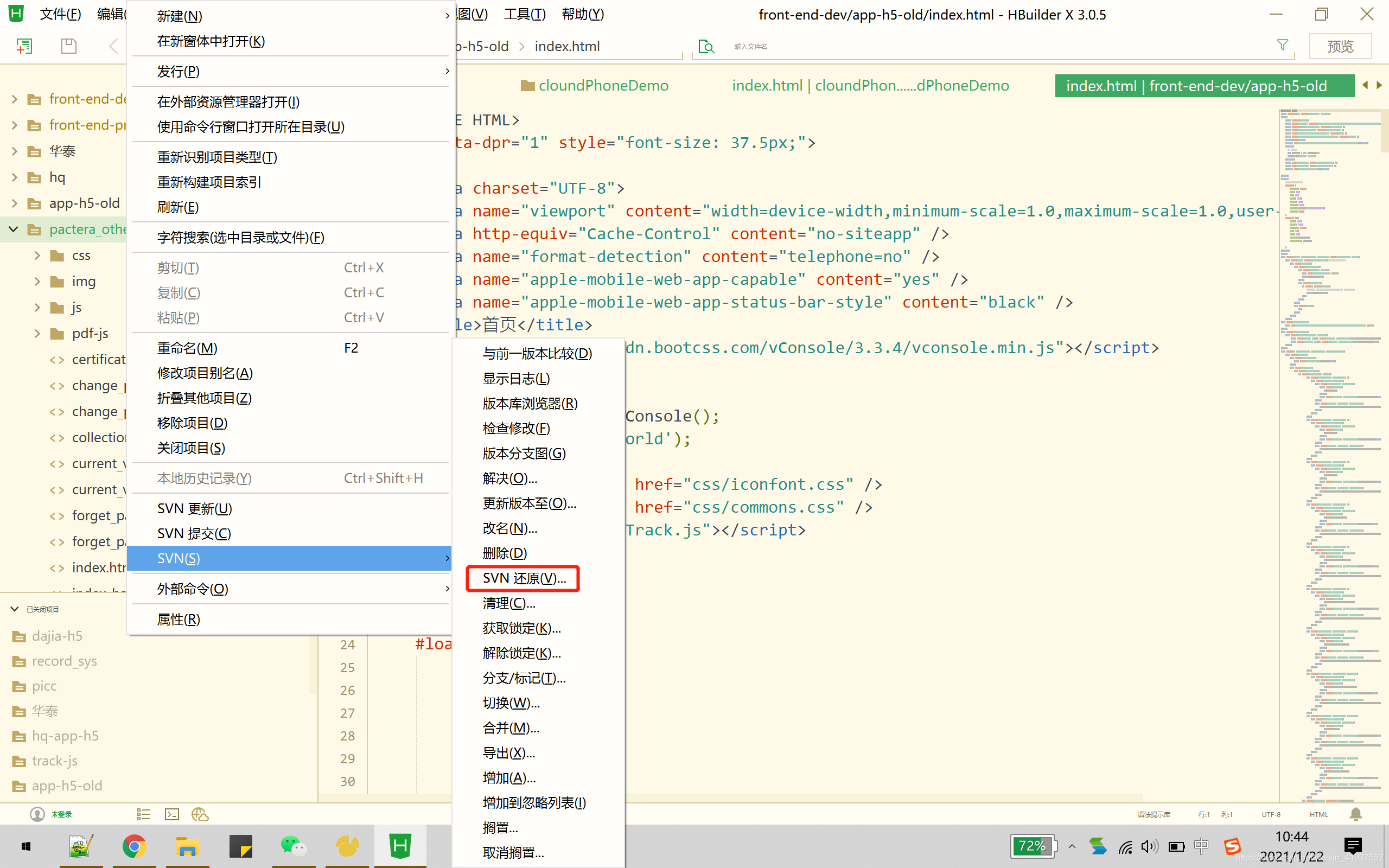 最近工作有点忙,让领导帮我改了一下前端代码,后面又有新的需求,然后就让我SVN还原一下再更新,我就直接更新啦,顺便总结一下这两者的区别,怕影响项目进度,然后采用把项目删除,再从SVN更新一下,也是一样的效果。