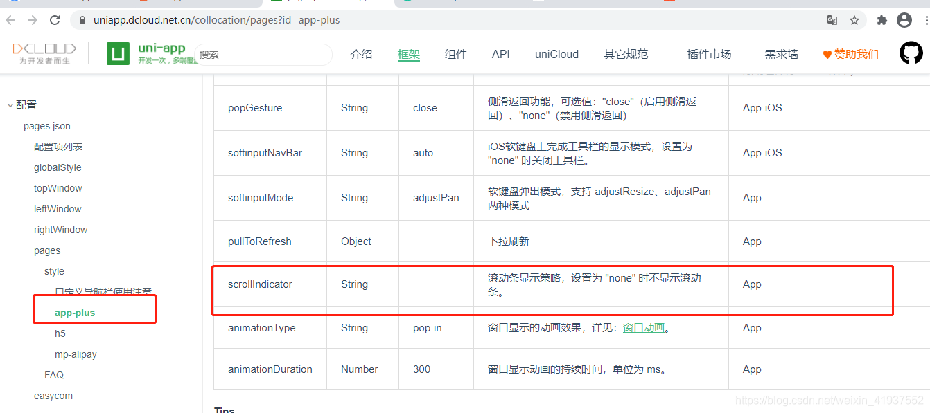 "globalStyle": { //全局配置 "scrollIndicator":"none", // 不显示滚动条 "app-plus"