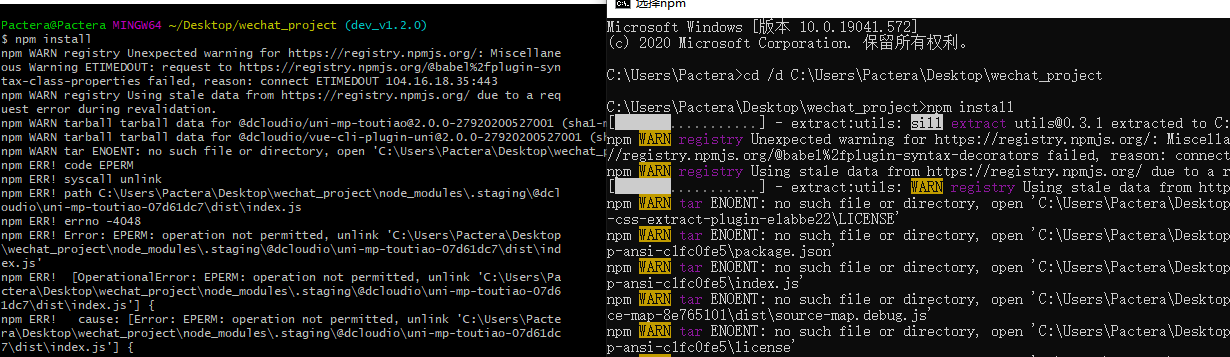 顺便测试一下git bash和cmd安装nmp intall,测试他们之间的关系,发现git bash应该比cmd命令更丰富一点,推荐使用git bash.