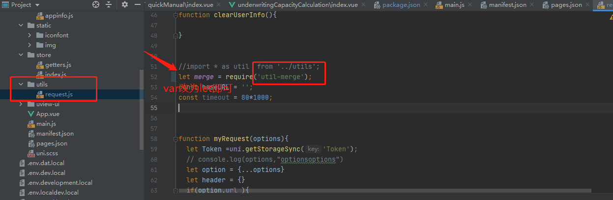 检查了一下代码是缺少util-merge插件。可以在编译器上进行安装,或者更改声明。