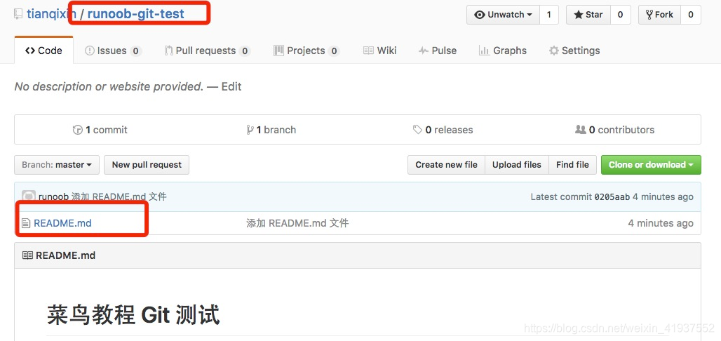 master 69e702d] 添加到远程1 file changed, 0 insertions(+), 0 deletions(-)create mode 100644 sunjiaoshou-test.txt$ git push origin master    # 推送到 Github重新回到我们的 Github 仓库,可以看到文件已经提交上来了: