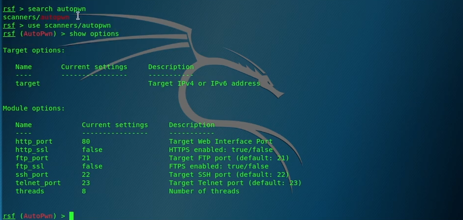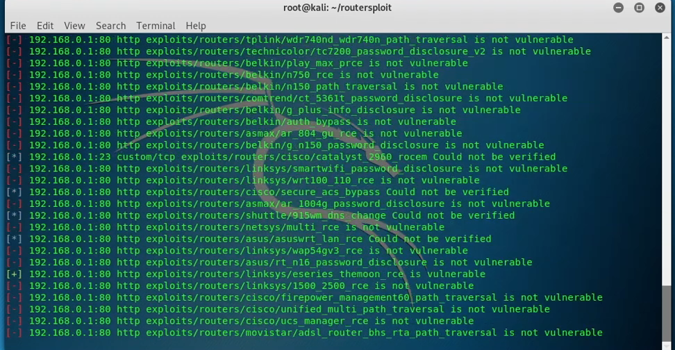routesploit有一个autopwn模块,可以自动检查适合我们设置的目标的任何漏洞
