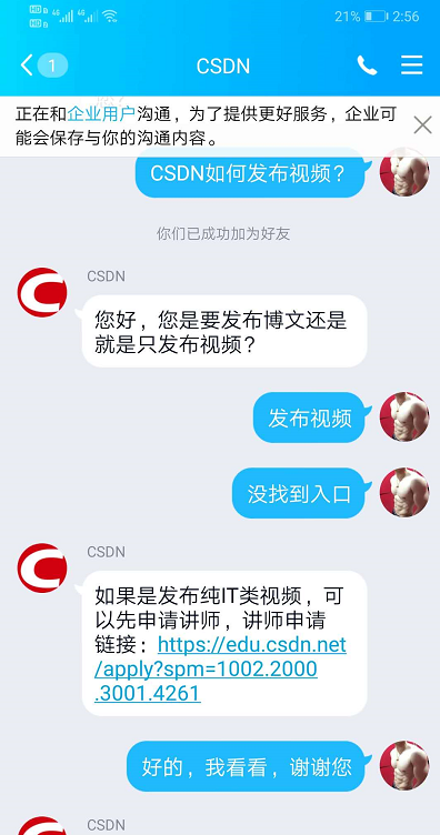 最近想在CSDN上面上传视频,发现找不到入口,包含APP和PC端的博客,无奈之下只能咨询客服,