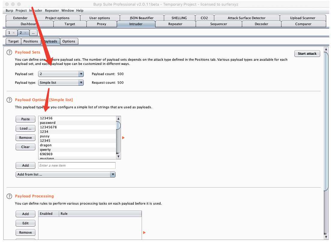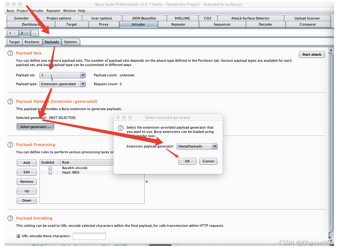 按照箭头顺序将Payload来源设置为Extensin-generated,并设置负载伪fakeIpPayloads,然后设置第二个变量。