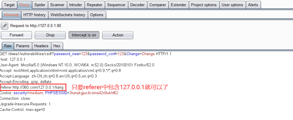 这次我们先正常的访问这个完整,然后用burpsuite进行抓包,如图可以看到Referer字段