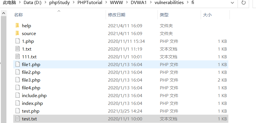 http://127.0.0.1/dvwa1/vulnerabilities/fi/?page=file:///D:\phpStudy\PHPTutorial\WWW\DVWA1\vulnerabilities\fi\test.txt