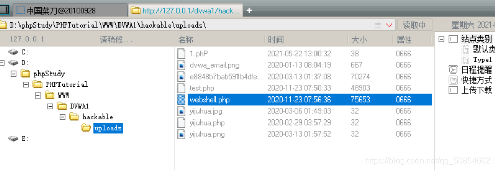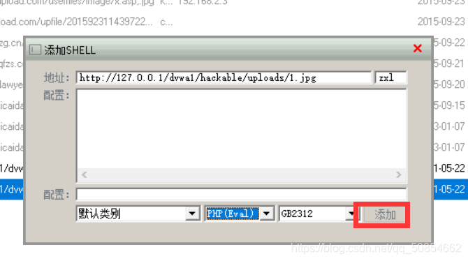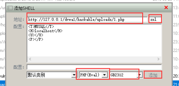 这时我们利用之前的文件包含漏洞来配合中国菜刀连接刚刚上传的一句话木马