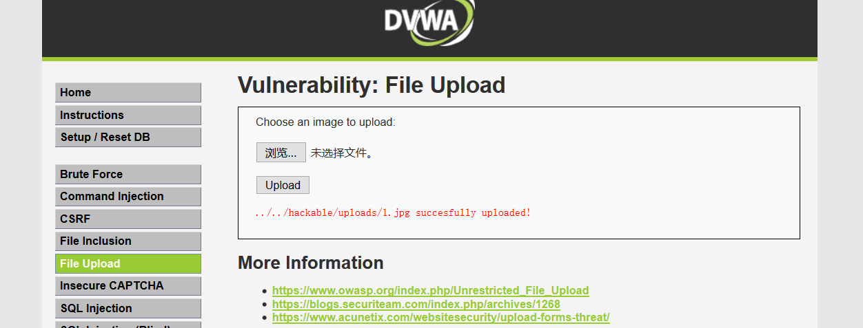 回到刚刚dvwa界面上,上传这个具有一句话木马的图片(图片马)