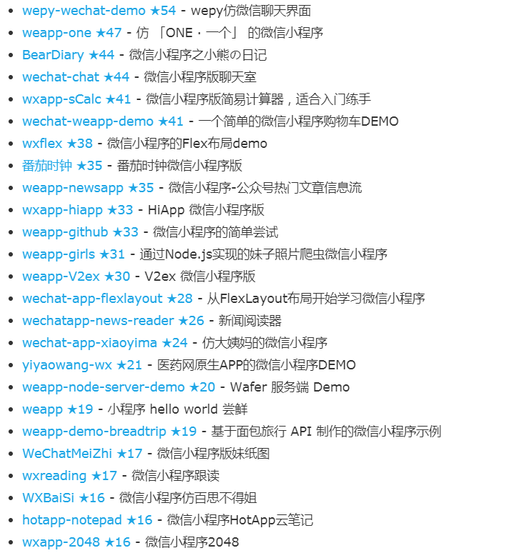 微信小程序的火热程度大家都有所了解,也有很多牛人写了不错的小程序,今天ytkah就整理一些github上的小程序开源项目,源码可以直接下载来用,感兴趣的朋友赶紧去看看吧!以下小程序排名按star的数量来排,数字动态变化中,请参考具体的项目