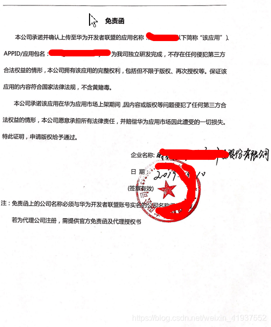 针对华为应用市场,不管提交的是什么类型的应用,都应该提交免责函,
