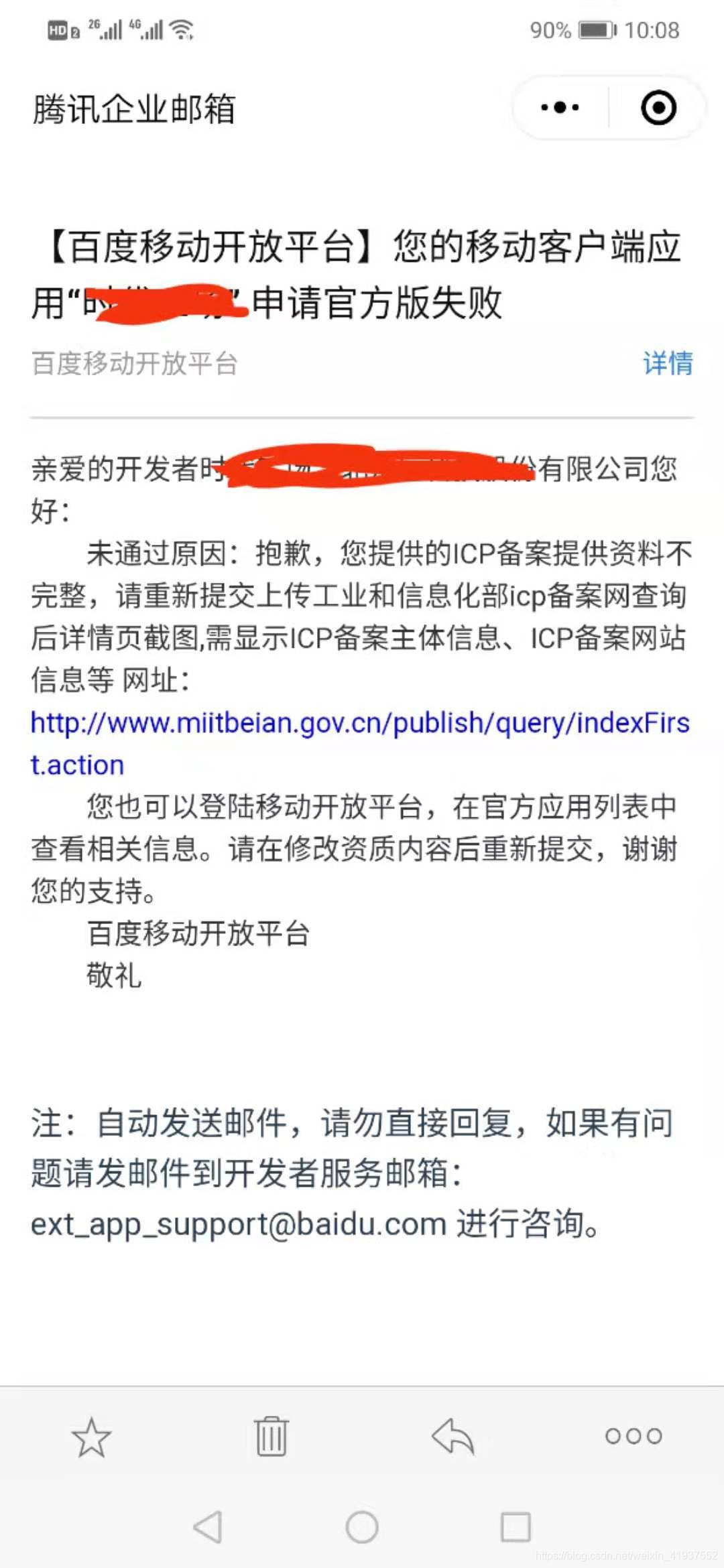 这里需要登录工业和信息化部查询后的ICP备案后的详细页面截图。(其实也可以在备案的平台查询相关信息,我的是在阿里云备案的,所以直接去阿里云比较方便快捷)