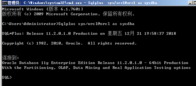 - cmd 窗口 输入 -> Sqlplus sys/orcl@orcl as sysdba (sys登陆oracle)