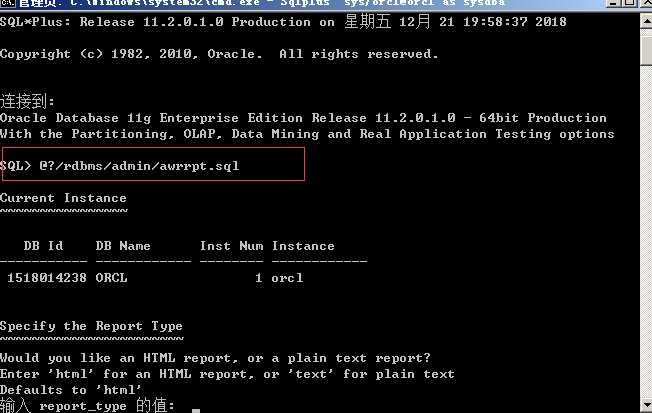 cmd 命令生成awr报告: