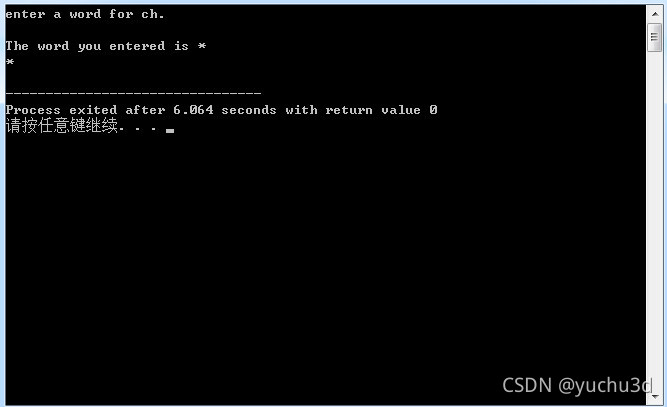 这里,当你输入一个字符之后,程序会等待你输入第二个非空白字符(注意,会跨过第二个非空白字符前的空格和回车符),程序才会进入下一步,而scanf()读取的却是你输入的第一个字符。
