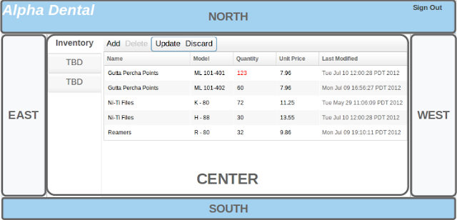 <window ...'><borderlayout width='100%' height='100%'><north size='15%'><hlayout width='100%' height='100%'><label hflex='9' value='Alpha Dental' /><label hflex='1' value='Sign Out' ></label></hlayout></north><east size='10%'></east><center><tabbox width='100%' height='100%' orient='vertical'><tabs width='15%'><tab label='Inventory' /><tab label='TBD' /><tab label='TBD'/></tabs><tabpanels><tabpanel><include src='inventory.zul'/></tabpanel><tabpanel></tabpanel><tabpanel></tabpanel></tabpanels></tabbox></center><west size='10%' ></west><south size='10%'></south></borderlayout>