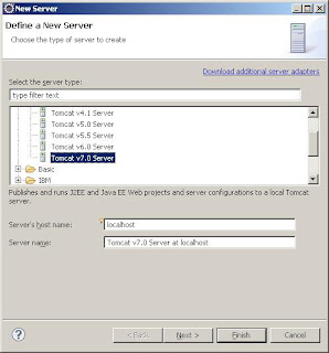 - 在“新服务器”对话框中,选择“ Apache / Tomcat v7.0服务器”,然后单击“下一步”。