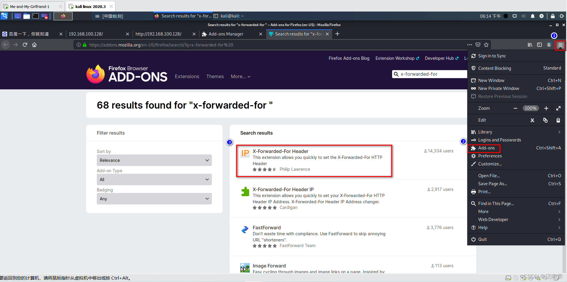 接着在火狐浏览器插件那里搜索X-forwarded-for下载该插件