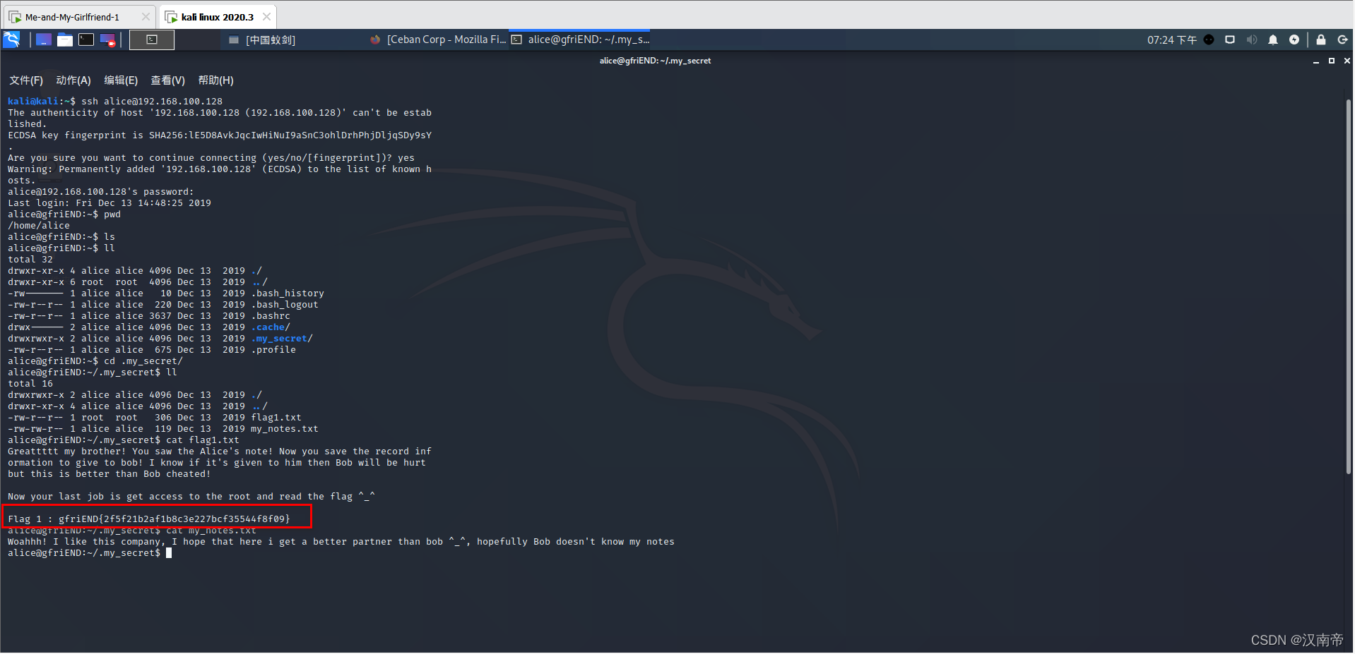 成功登录该用户后,查看相关权限与文件,发现了flage.txt文件