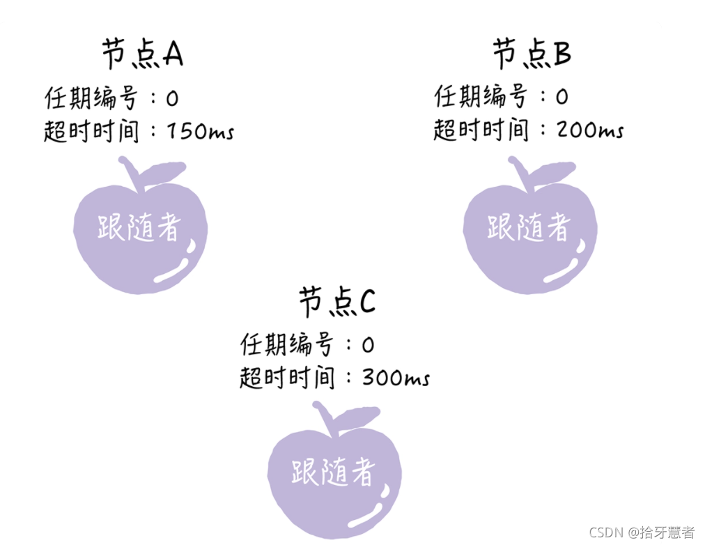 初始状态:所有节点都是跟随者