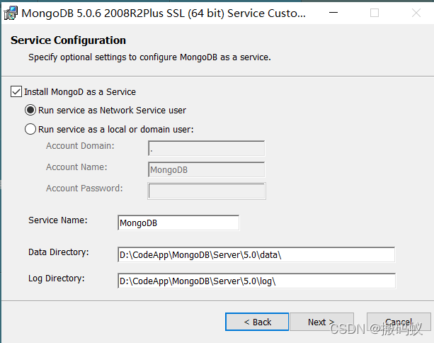 记住这个安装目录:D:\CodeApp\MongoDB\Server\5.0