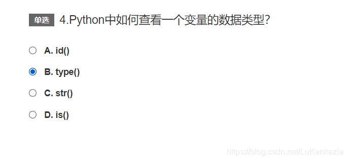 第四题,考察基本内置方法,type(obj)用于查看obj的数据类型