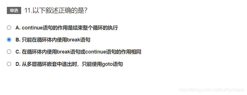 第十一题,break语句用于跳出循环,如果不在循环体内使用的话会报错。