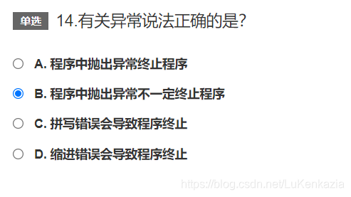 第十四题,若用try - except语句,抛出的异常被except语句拦截就不会终止程序。