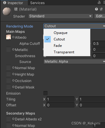 十三、至此已经完成导入,如模型出现异常请先检查相关材质是否已经先导入了,并且和原来PMX模型相对目录结构一致。 已导入的话,将材质的渲染模式改成Cutout。