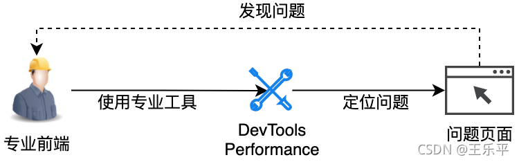 当页面出现性能问题,如加载慢、页面卡顿等现象时,大多是用户主观上的感受。而要真正客观的去评测性能和定位问题原因,通常需要专业的前端同学通过 DevTools 中的 Performance 等工具来查看(如图 1 所示),这无疑增加了客观看问题的成本。