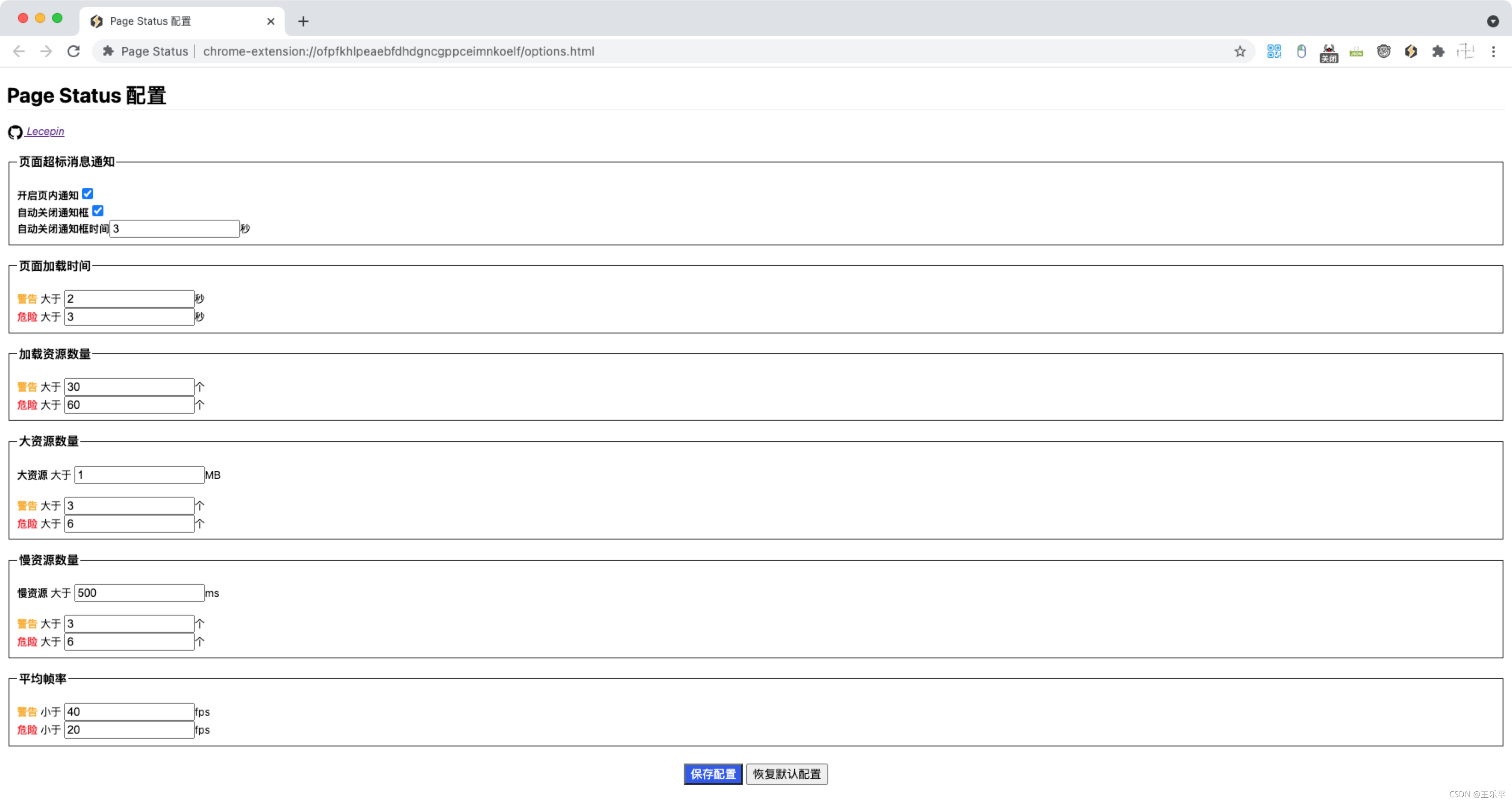 插件中所有参数都是可以进行配置的,可以点击扩展图标右下角的小齿轮按钮进入配置页面,也可以在扩展图标右键选择选项进入,如图 10 所示: