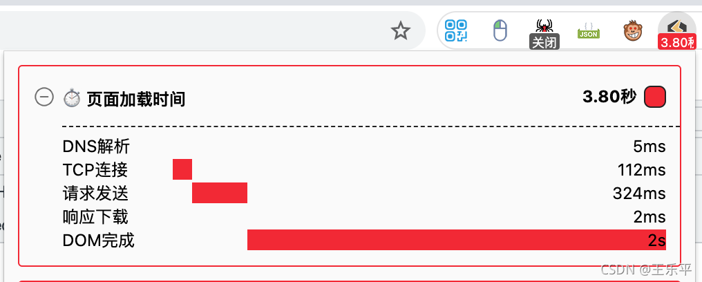 页面加载时间 表示的是页面触发 load 的时间,会同步到浏览器的工具条中,点击插件图标会显示更详细的页面加载信息,如图 4 所示: