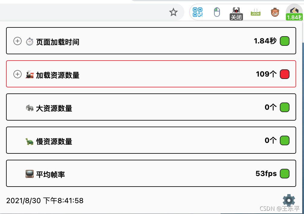 - 页面加载时间:暂时定位为 load 的时间。