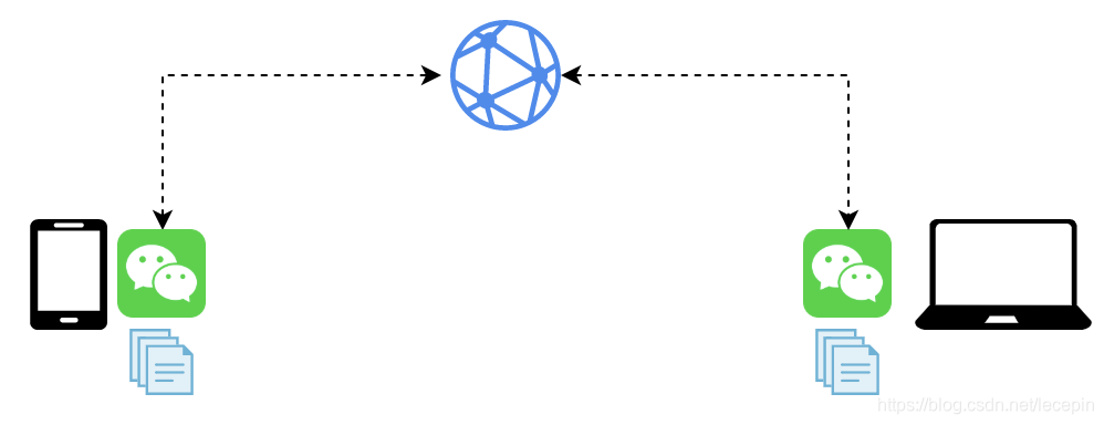 - 需要先把文件上传到聊天软件的服务器,然后再从软件服务器进行下载。