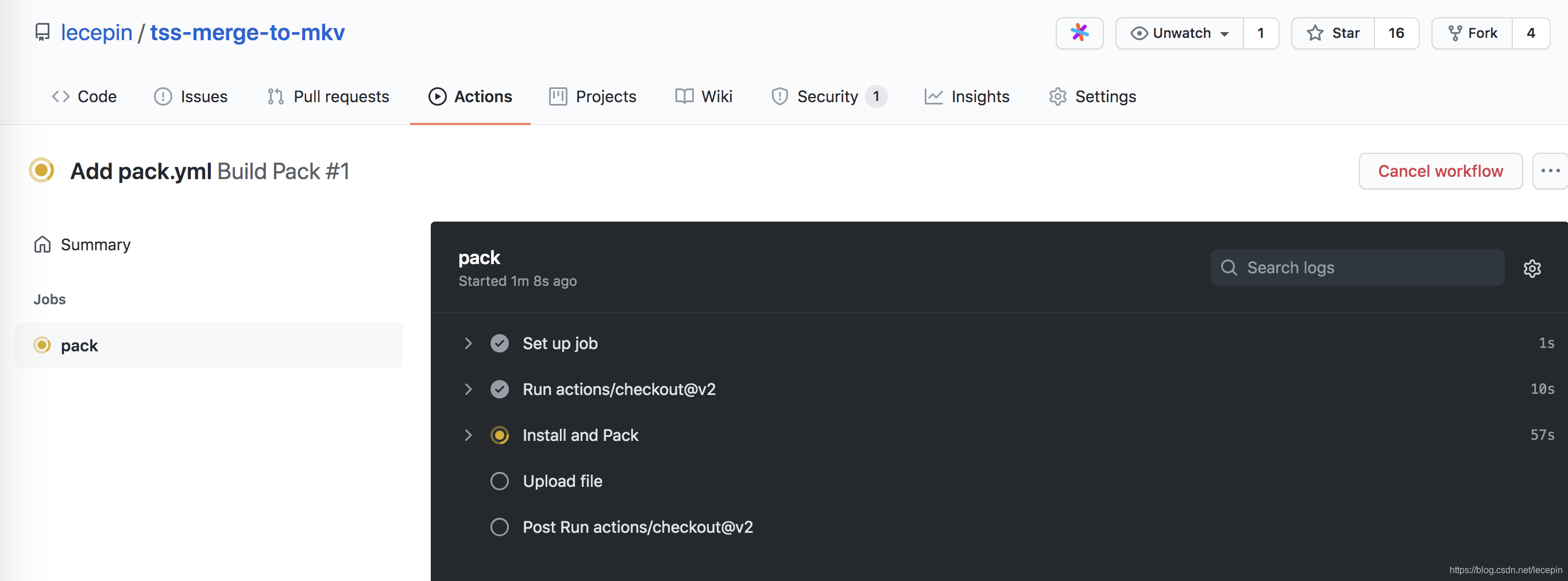 可参考这个仓库:https://github.com/lecepin/tss-merge-to-mkv/blob/master/.github/workflows/pack.yml