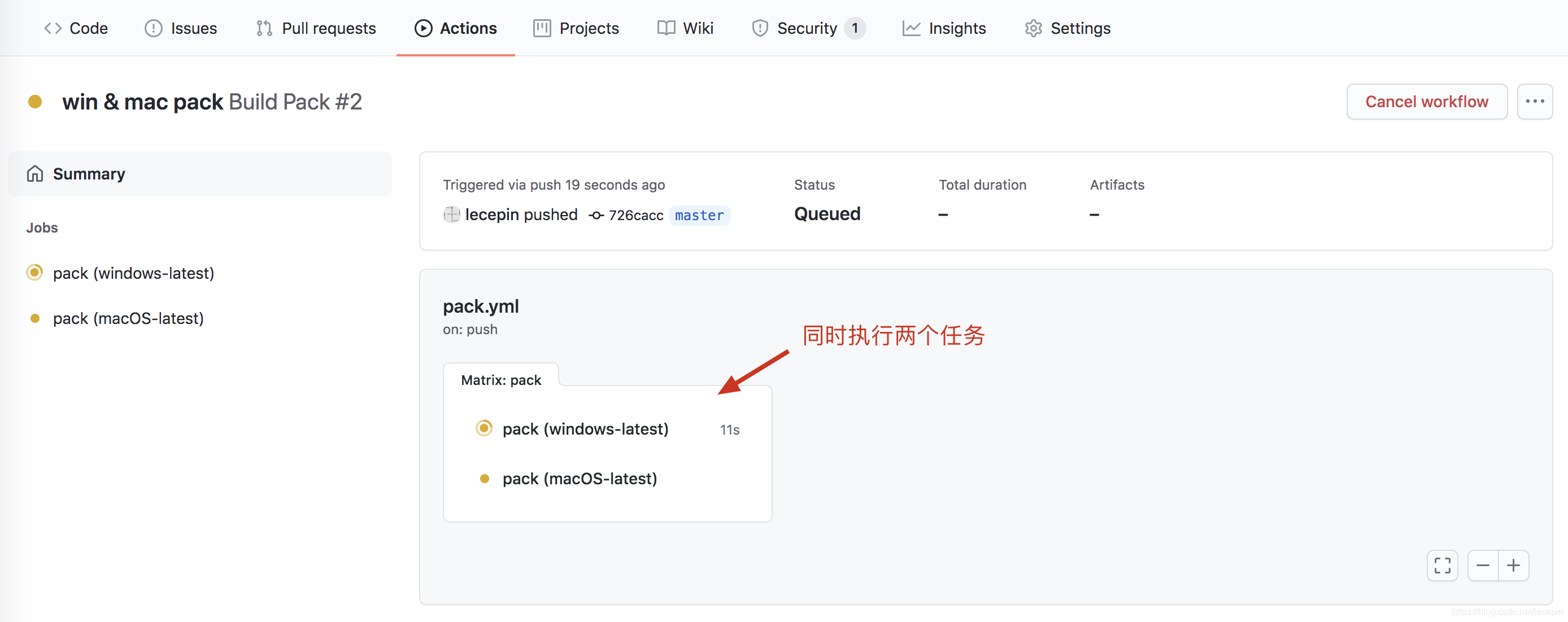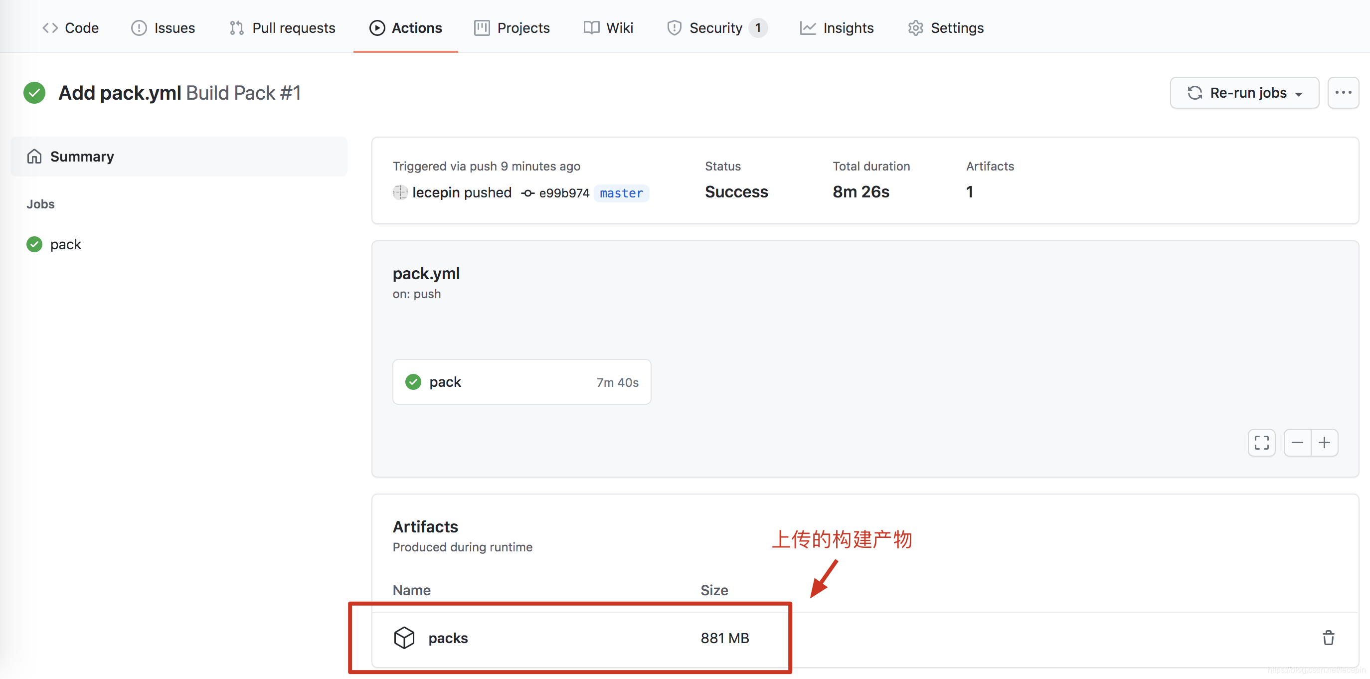 jobs:pack: # 打包任务runs-on: windows-latest # 在 windows 系统中运行steps:- uses: actions/checkout@v2 # 下载仓库代码到工作流机器中- name: Install and Pack # 安装依赖并且进行构建run: |npm installnpm run pack- name: Upload file # 将构建产物进行上传uses: actions/upload-artifact@v2with:name: packs # 上传后的名字path: packs # 将 packs 目录进行上传